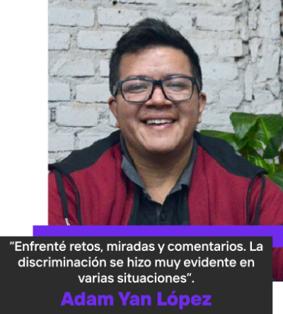 Adam es técnico y licenciado en Comunicación Social, graduado de la Facultad de Humanidades y Ciencias Sociales de la UNaM. Actualmente trabaja en la Dirección Nacional de Vialidad, empleo que se generó a través del cumplimiento de la Ley de Promoción del Acceso al Empleo Formal para personas Travestis, Transexuales y Transgénero (Ley 27.636) en la República Argentina. A su vez forma parte de una asociación que se llama Somos Diverses, en la cual milita y trabaja por la promoción de derechos del colectivo LGBTIQ+ en la Ciudad de Posadas.